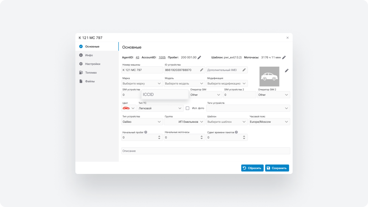 В карточку объекта добавили новое поле ICCID — уникальный идентификатор SIM-карты, которое: