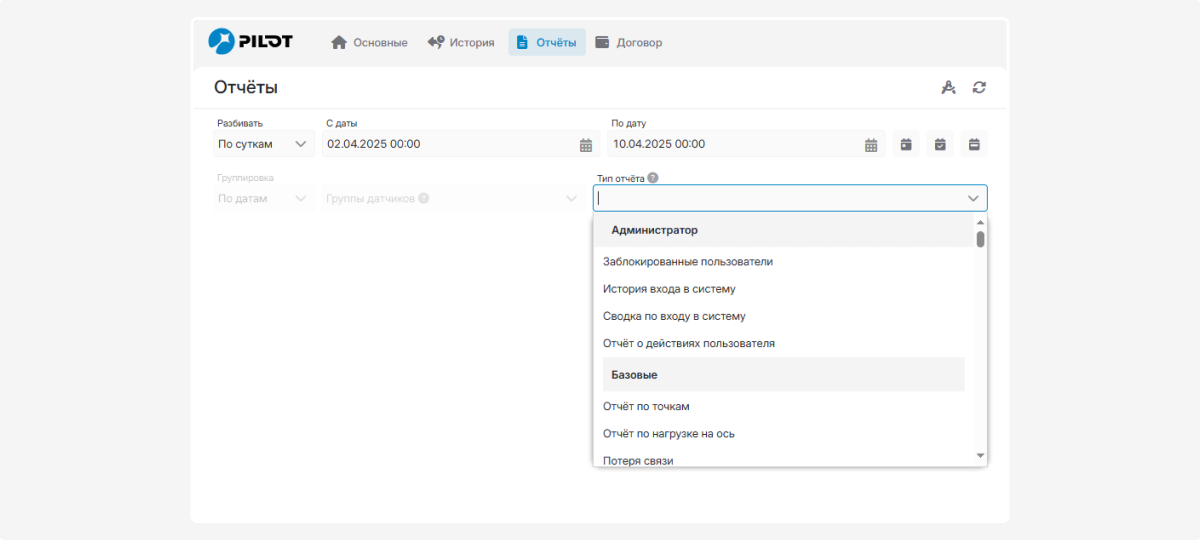• Выберите типы отчёта — поставьте галочку напротив нужного названия отчёта