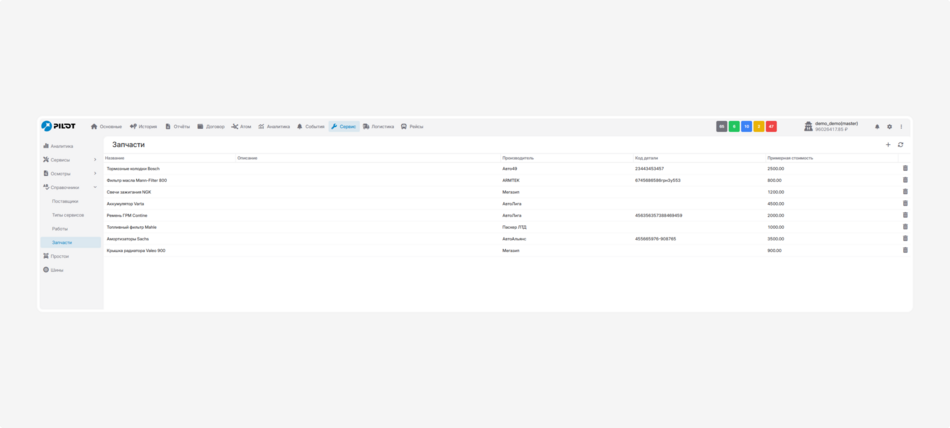 Здесь отображаются все добавленные вами запчасти, которые используются при обслуживании.