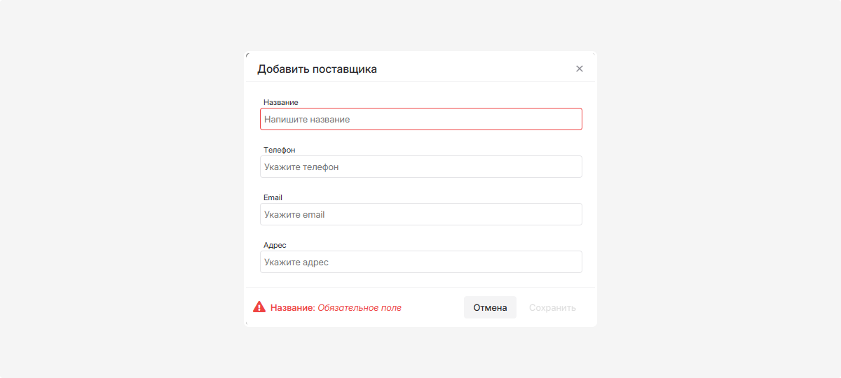 Поставщик или производитель — выберите из ранее добавленных